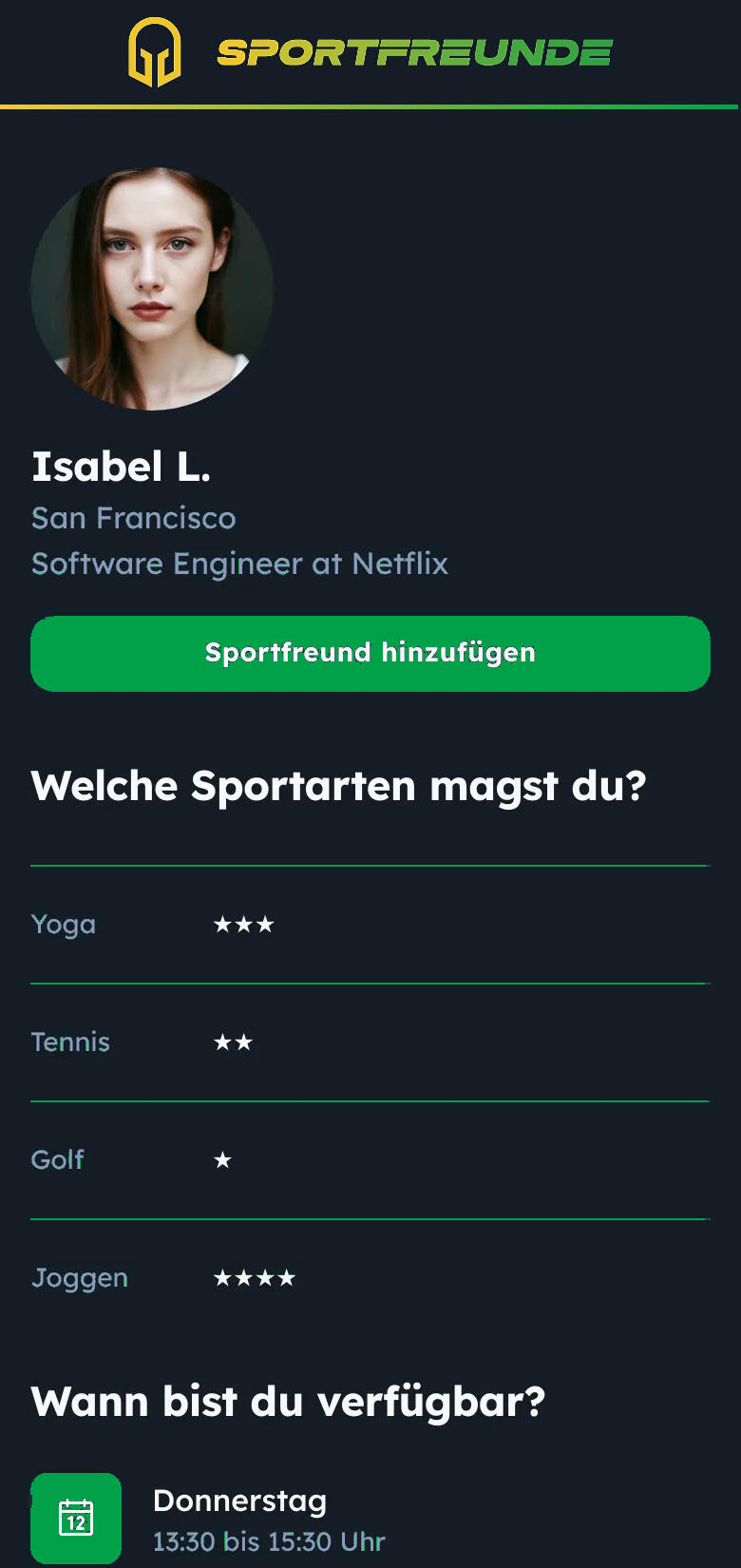 Die Sportfreunde App hilft Dir dabei, andere Menschen zu treffen und Dich regelmäßig aktiv zu betätigen — für ein gesünderes und glücklicheres Leben!