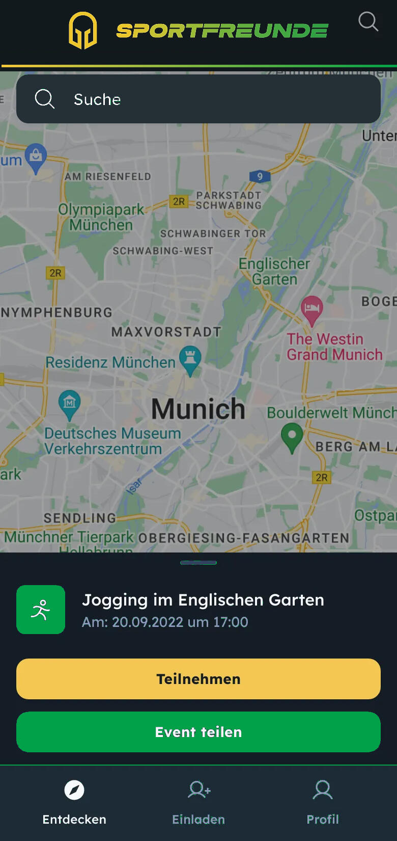 Suche nach passenden Sport-Events in Deiner Nähe, finde Sportpartner oder miss Dich mit anderen Sportfreunden.